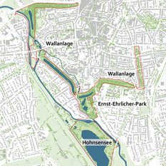 Bahnhofsplatz, Wilhelmsplatz, Islandstraße, Altstadtstraßen, Bahnhofstraße, Stadtpark und Wupperauen